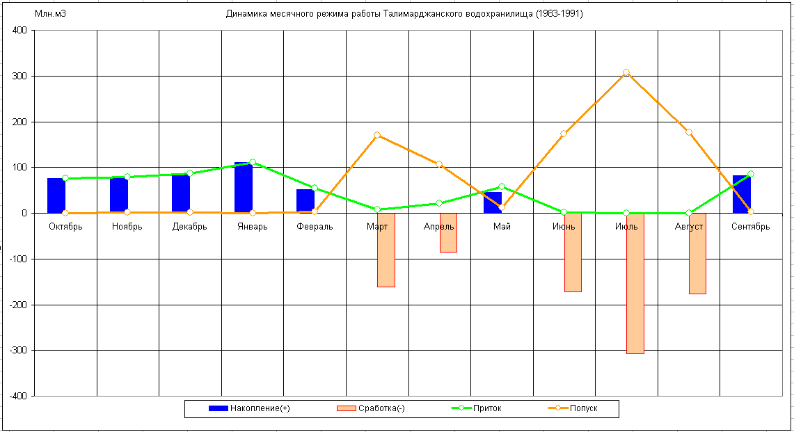 Динамика месячного режима работы водохранилища (1983-1991)