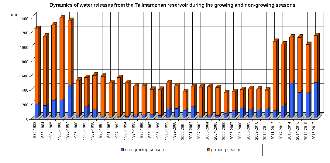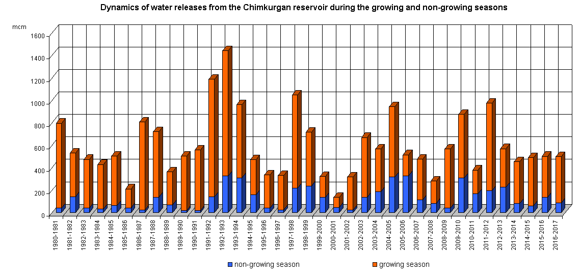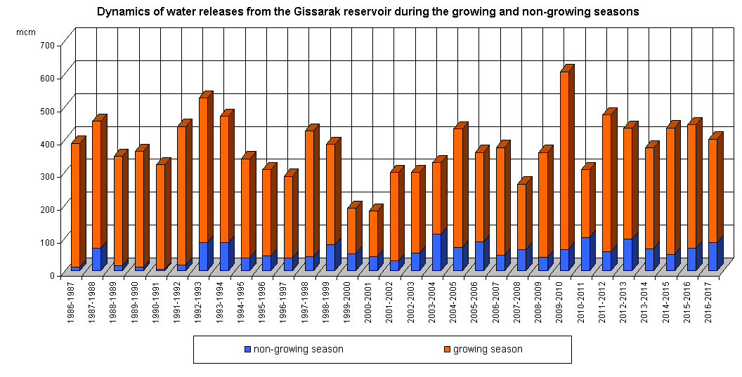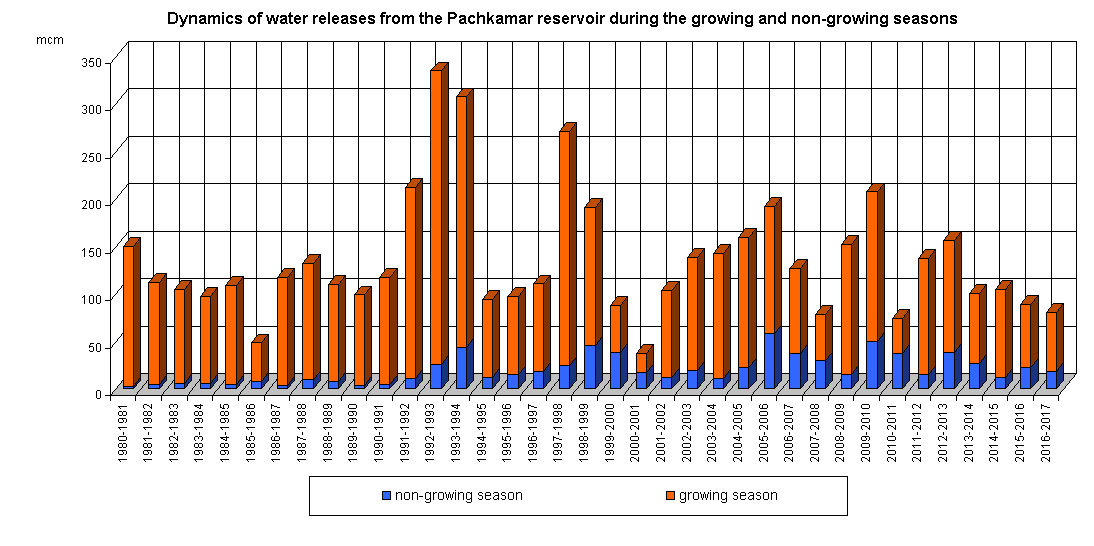 Dynamics of water releases from the reservoir during the growing and non-growing seasons