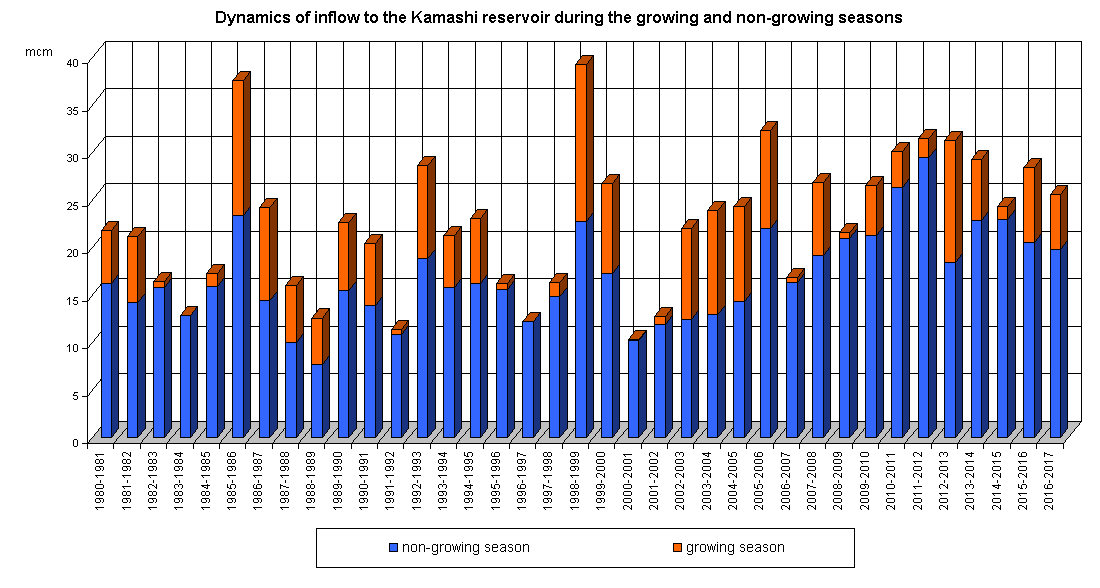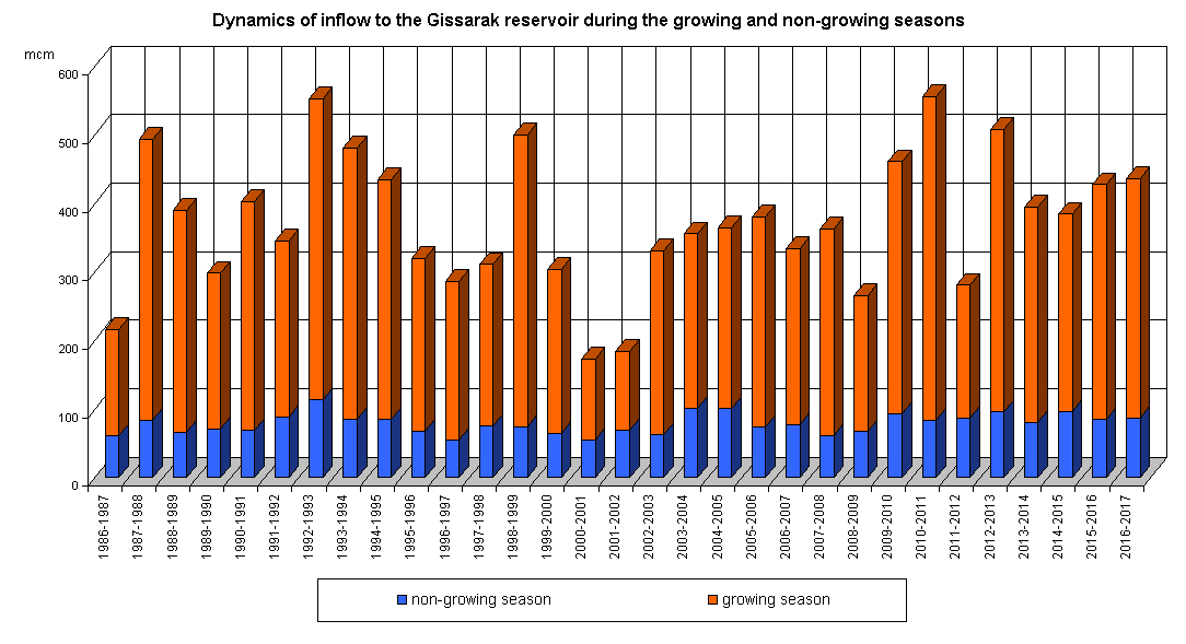 Dynamics of inflow to the reservoir during the growing and non-growing seasons