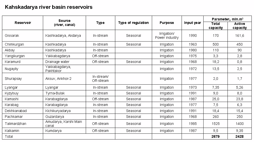 Main tasks of the basin water management system are flow regulation, water delivery to water users through irrigation and water supply systems, and environmental protection.