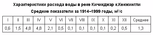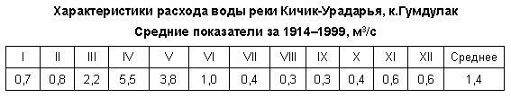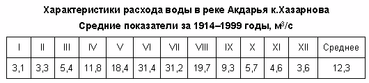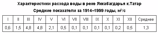 В районе населённого пункта Сувлисай ширина реки составляет 13 м, глубина — 70 см, скорость течения — 2,5 м/c, у населённого пункта Бешкапа ширина достигает 40 м при глубине 1,4 м, далее, в районе населённого пункта Чигатай, ширина равна 20 м при глубине 1,5 м, скорость течения близ этой точки равна 1,7 м/c. Ширина рукава Яккабагдарьи (Кзылсу) выше впадения — 18 м, глубина — 30 см, скорость течения — 0,4 м/c. Грунт дна во всех точках — каменистый.