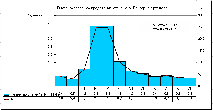 Длина реки равна 76 км. Площадь бассейна составляет 258 км2. Река питается снеговыми и дождевыми водами. Среднемноголетний расход воды — 0,9 м3/с. Максимальные расходы наблюдаются в апреле и мае. Весной в русле Лянгара случаются интенсивные сели.