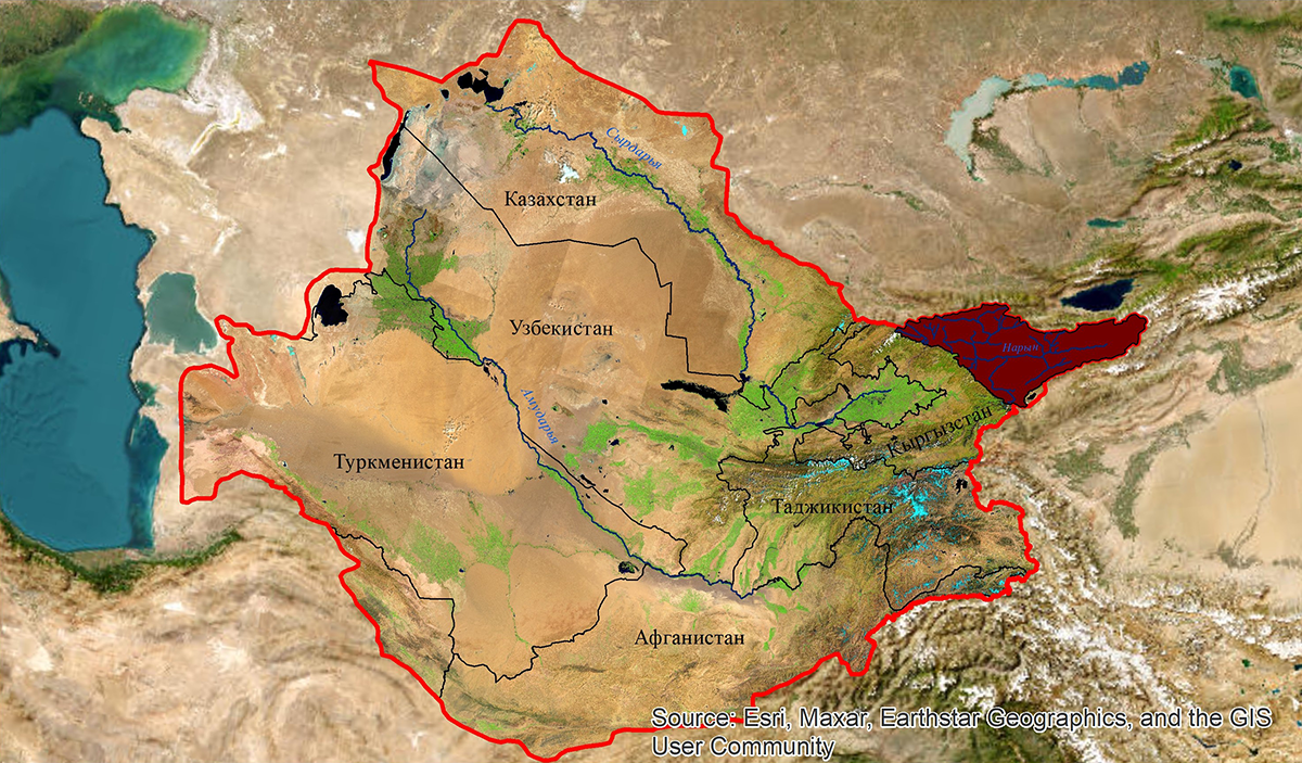 Расположение бассейна реки Нарын в бассейне Аральского моря