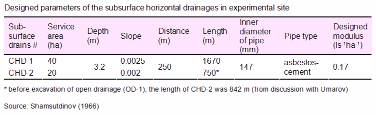 The drainage site is located at the eastern part of the Central Fergana (southern part of Fergana depression) on the new developed lands.