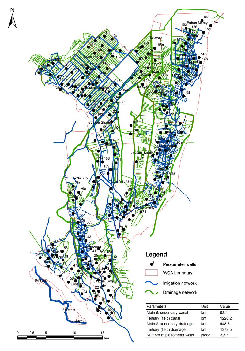 - gain knowledge about the drivers of this change by analyzing socio-economic and ecological indicators with the aim to enable spatial explicit recommendations for rehabilitation of degraded irrigated ecosystems.