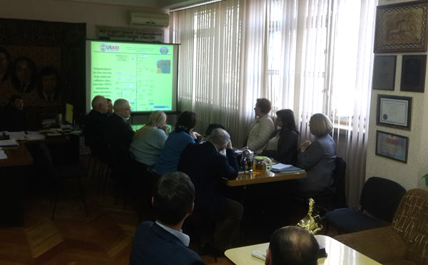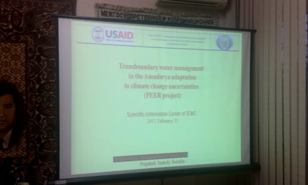 A meeting was held in the office of SIC ICWC on the 23rd of February 2017. The participants included Dr. Ingrid Verstraeten of the U.S. Geological Survey, Claire Thomas, Second Secretary from the US Embassy in Uzbekistan, Ekaterina Biryukova, Environment, Science, Technology and Health Assistant of the US Embassy in Uzbekistan, D.R.Ziganshina, A.G.Sorokin, G.V.Stulina, A.Galustyan, A.F.Solodkiy, I.Beglov, O.Usmanova, A.Nazariy, Sh.Sh.Mukhamedjanov, O.Eshtchanov, R.Tashpulatov, and R.Khafazov from SIC ICWC.
