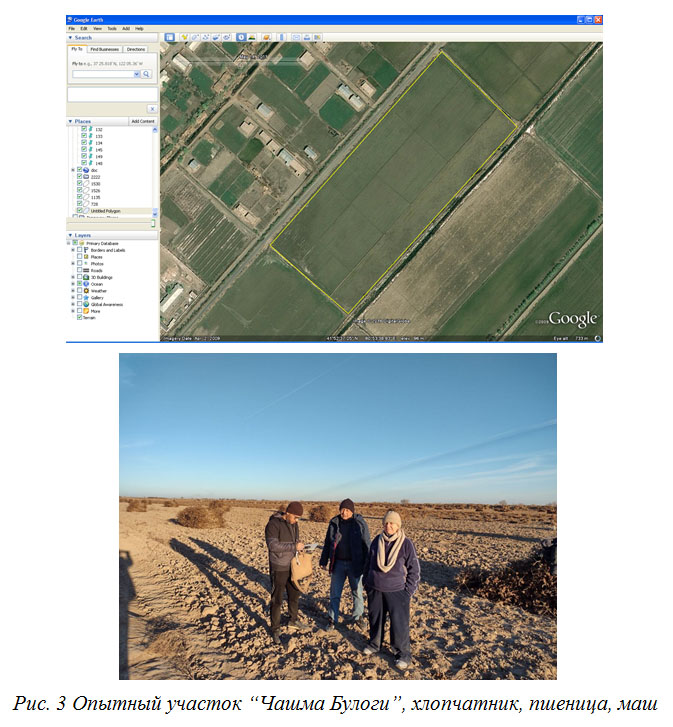 Three pilot sites were selected for research: “Karabuga” in Karauzyak district, “Tik-Uzyak” in Muynak district and “Chashma Bulogi” in Ellikkala district.