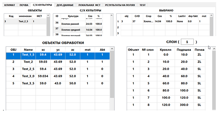 - Soil map (WGS-84 projection) covering the processing objects and containing granulometric composition of the root zone