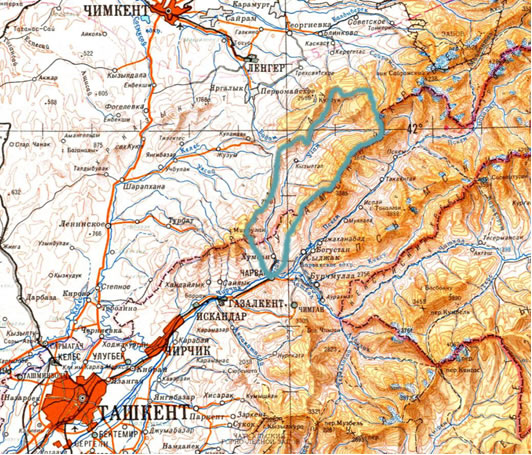 The Ugam river is a small but important transboundary tributary to Chirchik river, northeast of Tashkent. The length of Ugam river is about 70 km in total with an estimated basin area of 870 km2. The river rises in the Ugam ridge, in the western Tien Shan mountains and crosses the Saigam-Ugam National Park in south Kazakhstan before reaching the border and entering into Uzbekh Chirchik valley in Tashkent region. With an annual runoff of around 1.200 million m3 the Ugam river contributes around 20% to the total runoff of the Chirchik river downstream Charvakskoe reservoir and is a very valuable fresh water resource for the Tashkent region. However, increasing population density and tourism together with intensified agriculture have started to harm the ecological balance of the basin. A decrease in quality and quantity of the available water resources of the Ugam river basin can be observed.