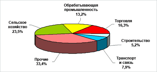 - слабым развитием других отраслей экономики, особенно, промышленности, строительства, сферы услуг и другие.