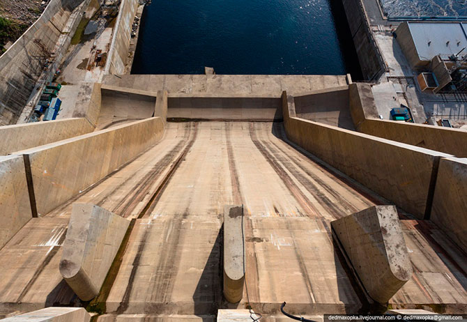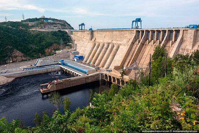 Бетонная гравитационная плотина высотой 140 метров является самой высокой в России плотиной подобного типа.