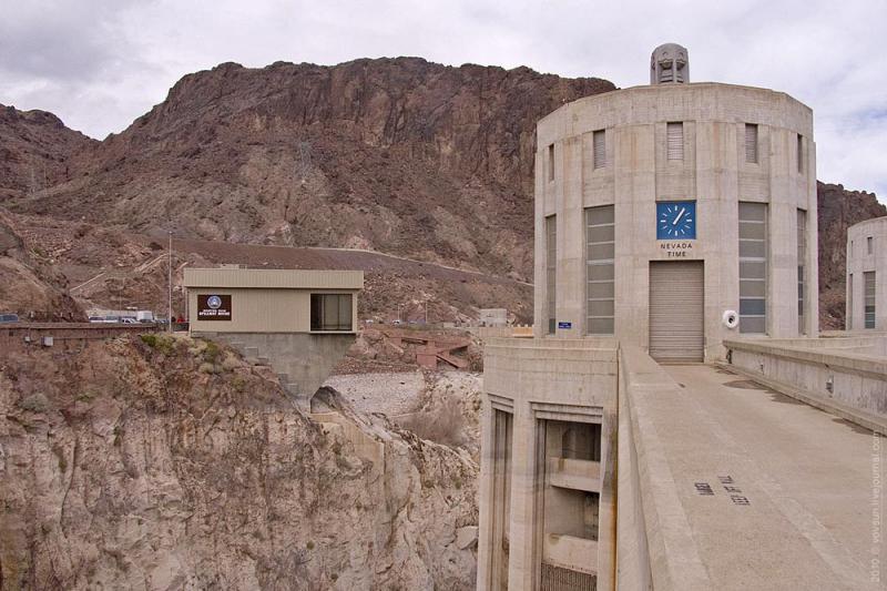 Плотина стоит на реке Колорадо, которая в этой точке является границей не только двух штатов — Невады и Аризоны, но и границей Тихоокеанского и Стандартного горного США часовых поясов.