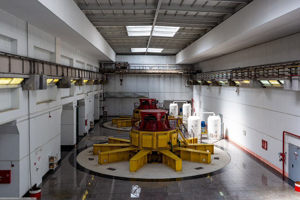 Из водосброса вытекает санитарный пропуск, чтобы не пересыхало русло реки между плотиной и станцией.
