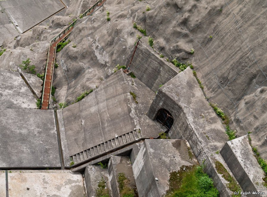 Внутренняя сторона дамбы не плоская - на ней полно лесенок, ходов, ступенек.