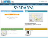 Database of the Syrdarya river basin Database contains general information about the Syrdarya river basin: basin morphology, water resources; water management structure. The online database provides information on real ten-day water withdrawals in the Syrdarya river basin (from 1991 till now, which is being updated every ten days). The database includes, in addition, information about water infrastructure, water quality, water resources use. |