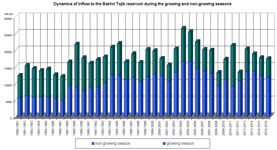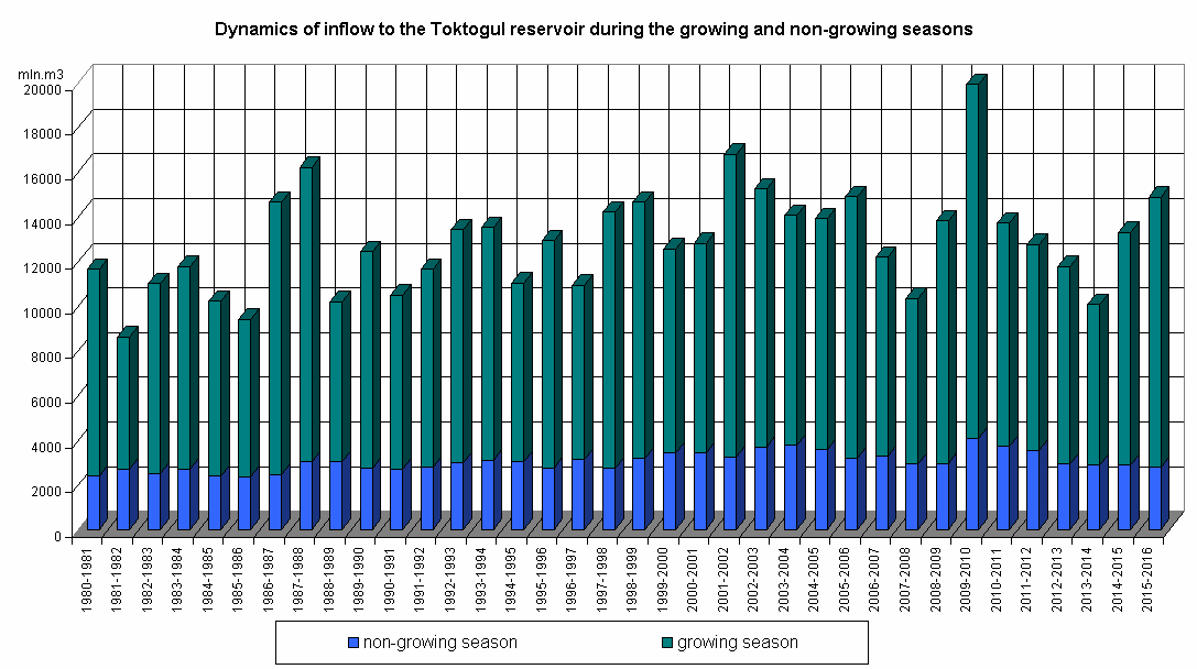 Dynamics of inflow to the reservoir during the growing and non-growing seasons