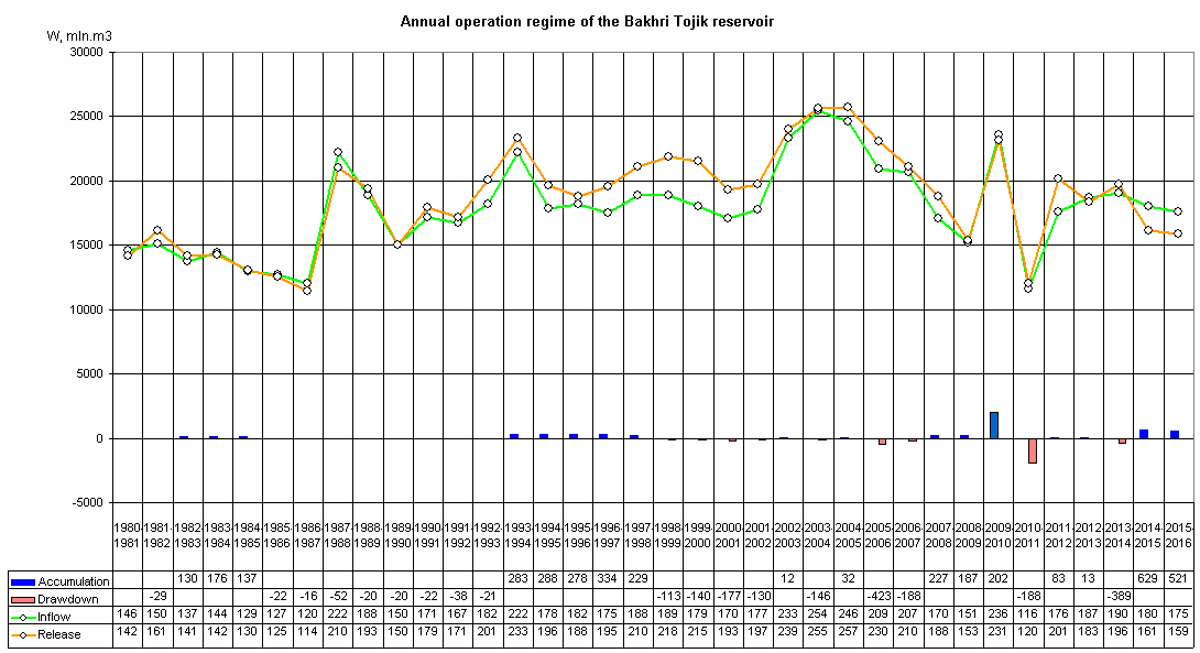 • Bakhri Tojik reservoir: total capacity is 4.03 km3, including effective capacity of 2.55 km3.