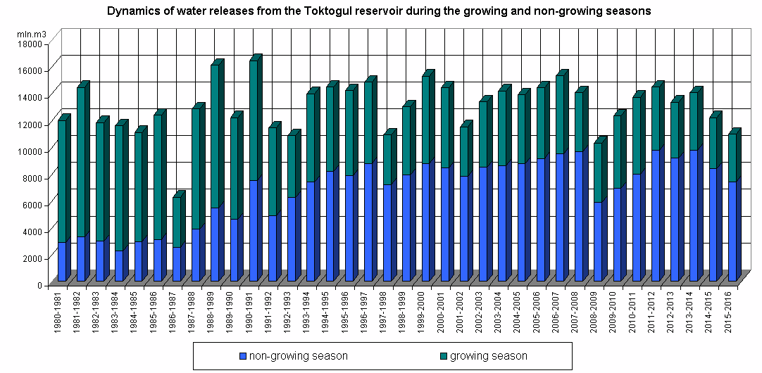 Dynamics of water releases from the reservoir during the growing and non-growing seasons