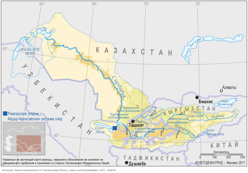 Карта бассейна реки Сырдарьи