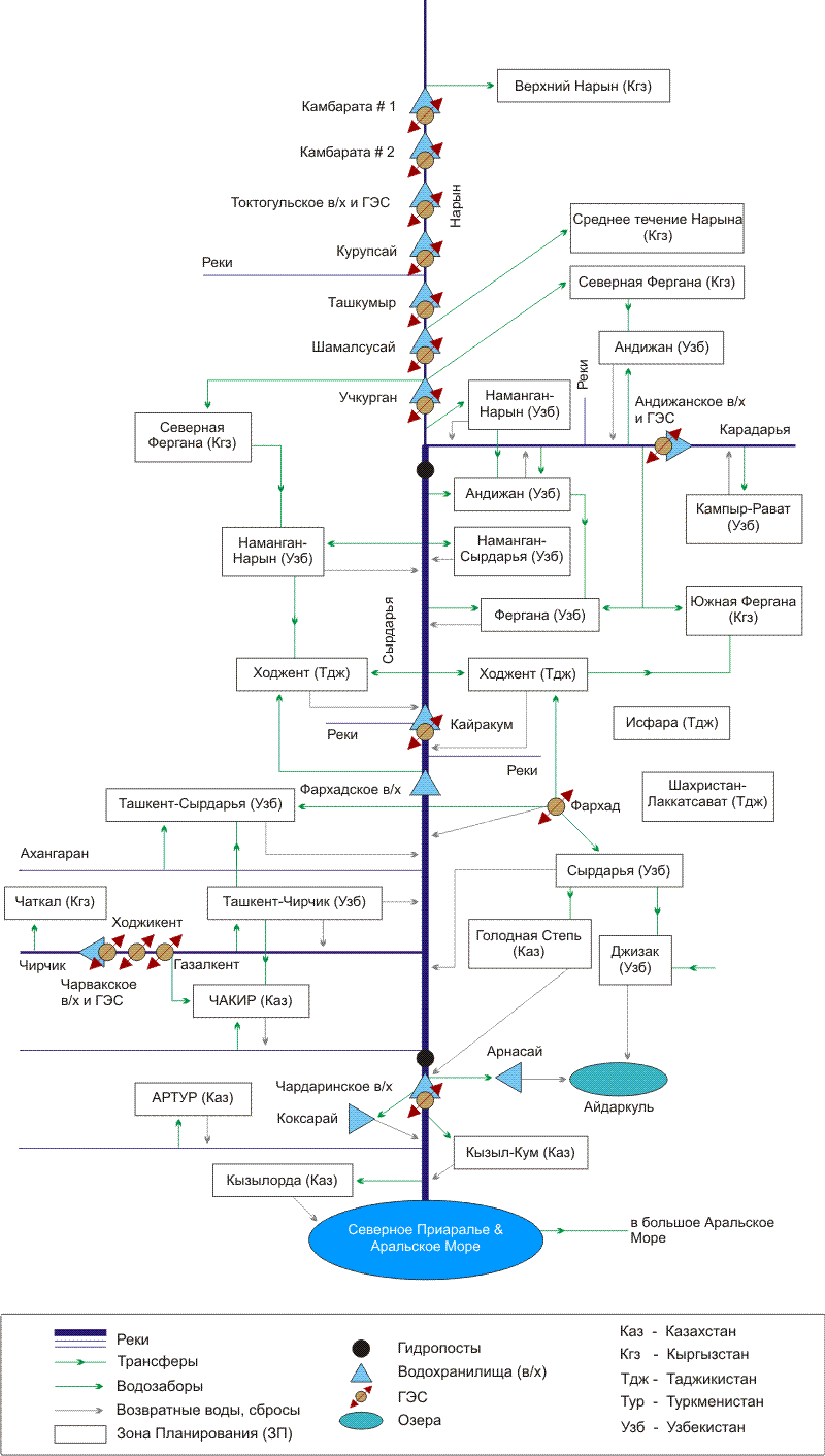 Водохозяйственная схема реки Сырдарьи