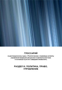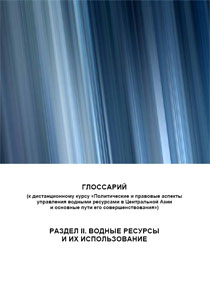 Аннотация: В настоящем Глоссарии даны основные понятия и их определения к дистанционному курсу «Политические и правовые аспекты управления водными ресурсами в Центральной Азии и основные пути его совершенствования»