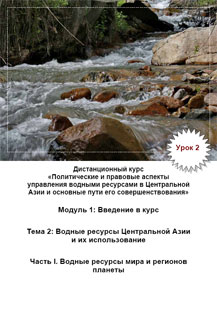 Аннотация: В части I темы 2 (Водные ресурсы Центральной Азии и их использование) рассмотрены вопросы формирования и использования водных ресурсов в глобальном контексте – в порядке следования принципу «от общего к частному» - представления общей картины и возможности сравнения с таковой в Центральной Азии.