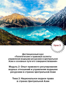 Аннотация: В рамках настоящей темы рассматриваются водное законодательство и управление водными ресурсами в государствах Центральной Азии, в соответствии с действующими основными актами водного законодательства стран Центральной Азии.