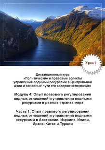 Аннотация: В рамках настоящего модуля рассматривается опыт правового регулирования водных отношений и управления водными ресурсами в 13 странах мира с разной спецификой (государственное устройство, природные условия, наличие водных ресурсов и др.).