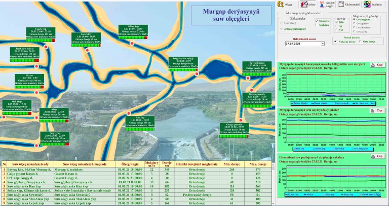 Water accounting As part of the Socio-Economic Development Program for 2019-2025, the efforts aimed at saving water and increasing water resources are made. In particular, water meters have been installed in 13 points along the Murgab River in Mary province . The automated water monitoring system allows the Mary water authority and the State Committee for Water Management control water level and irrigation water supply in real time for better water planning. The system is also important for early warning of local communities about floods.
