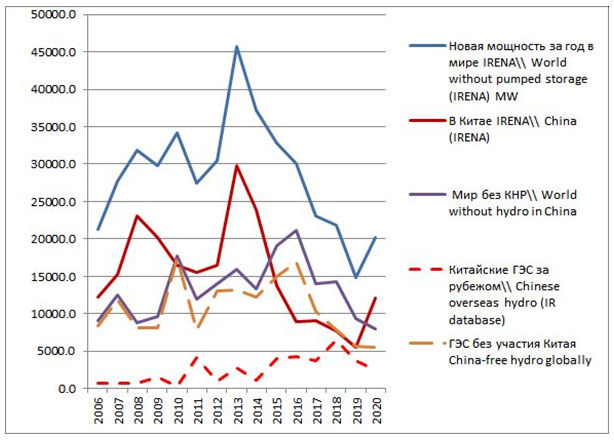 In 2020 China installed 48 GW of photovoltaics and 73 GW of wind capacity. The annual increase from wind power generation exceeded that from hydropower despite extreme floods on major rivers of the country. Already having the greatest hydropower fleet China, obviously, could substitute new hydropower construction by less destructive alternatives, but it still plans building new dams on transboundary watercourses to strengthen its strategic advantage over downstream neighbours.