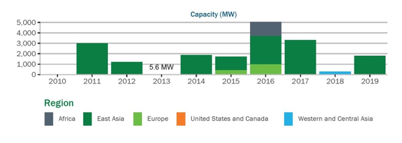 Figure 2.1 Annual globally installed hydropower