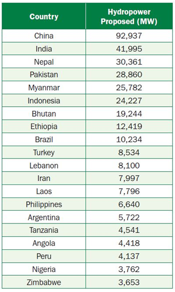 Table 2. Top-20 “hydropower-planning” countries as of January 1, 2020