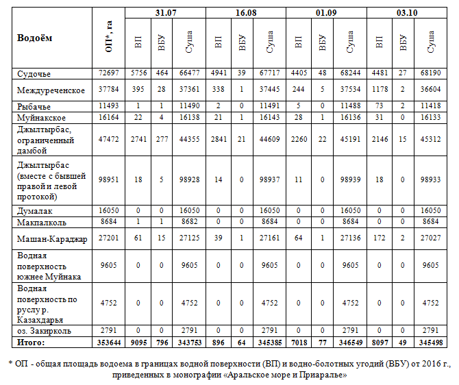 2.2.2. Водная поверхность и ветланды Восточной и Западной частей Большого Аральского моря