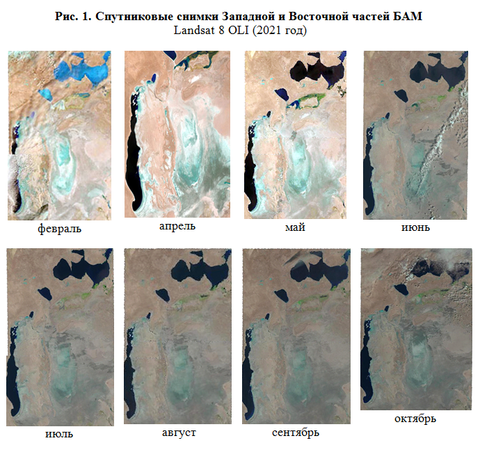 Специалистами НИЦ МКВК в 2021 г. продолжен мониторинг изменения поверхности Восточной и Западной частей Большого Аральского моря (БАМ), озерных систем дельты р. Амударья c использованием спутниковых снимков Landsat 8 OLI (http://cawater-info.net/aral/data/monitoring_amu.htm).