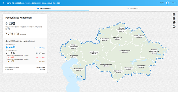 Free interactive map of rural water supply showing the information on access to water, financing availability and needs, population, network extension and deterioration, and other aspects has been launched (https://auylsu.kz/provision).