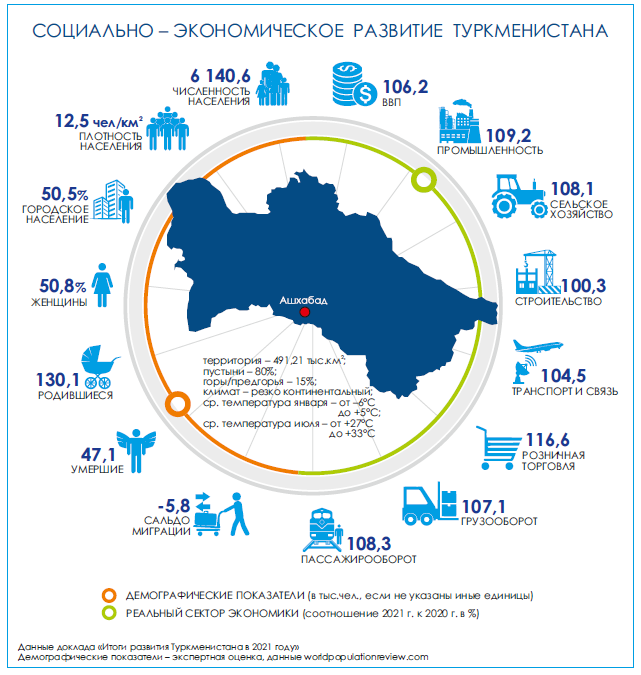 Засуха. Для ряда регионов Туркменистана 2021 г. стал самым засушливым. В Ашхабаде за год выпало 61,1 мм осадков (по данным на 27 декабря). Ранее менее 100 мм осадков в год в столице было зафиксировано в 2006 и 2008 гг.