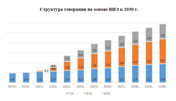 Thermal power is still the main source of electricity in the Republic. By 2030, it is planned to increase the total capacity of TPPs to 14.7 thousand MW (10.6 thousand MW in 2019) .