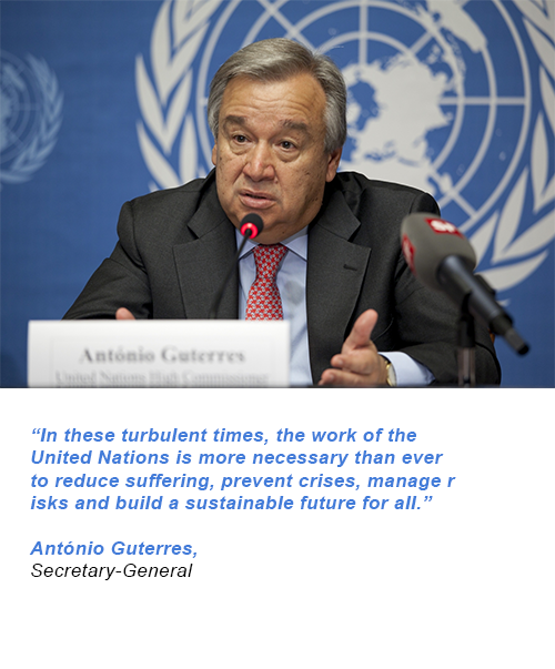 Each year, the Secretary-General reports on the work of the Organization, including priority areas of the UN’s activity and future plans. 2021 Report highlights the work in the following key area: sustainable development (more than 240 million people received essential services with support from UN country teams and resident coordinators; 120 million people benefited from social schemes); peace and security (deployed 40+ peacekeeping, special political missions and offices to prevent conflict and support peacebuilding efforts); development in Africa (supported 38 countries and 3 Regional Economic Communities in developing national strategies to harness the benefit of the African Continental Free Trade Area Agreement); human rights (engaged with resident coordinators and country teams in 59+ countries to place human rights at the center of COVID-19 Socio-Economic Response Plans); humanitarian assistance (helped mobilize $19.1B to assist 264.2M people in 64 countries and territories); international justice and law (deposited 632 multilateral treaties with the Secretary-General addressing matters of worldwide interest); disarmament (supported the Treaty on the Prohibition of Nuclear Weapons, which entered into force on 22 January 2021, following the fiftieth ratification); drugs, crime and terrorism (contributed to COVID-19 preparedness in detention centers in more than 50 Member States, resulting in improved prison conditions and basic services for detainees).