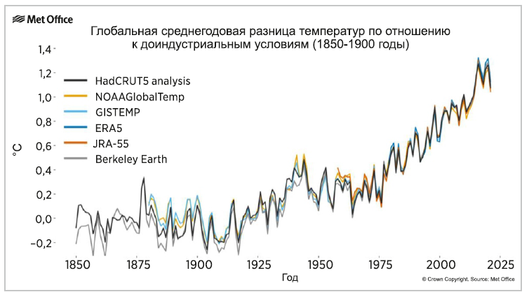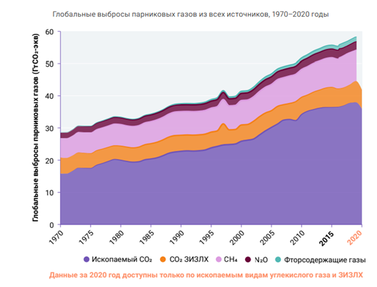 ВПГ в результате деятельности человека являются причиной потепления примерно на 1,1°C за последние десять лет с 1850-1900 гг. В 2020 г. среднегодовая температура была на 1,2°C выше нормы. Ожидается, что усредненная оценка температуры за следующие 20 лет достигнет или превысит уровень потепления в 1,5°C. Парижское соглашение обязывает продолжать усилия по ограничению роста температуры до этого уровня.