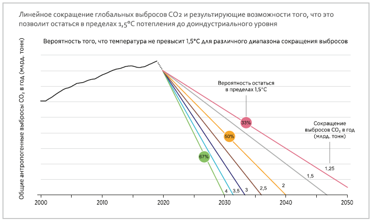 Линейное сокращение глобальных выбросов CO2 и результирующие возможности того, что это позволит остаться