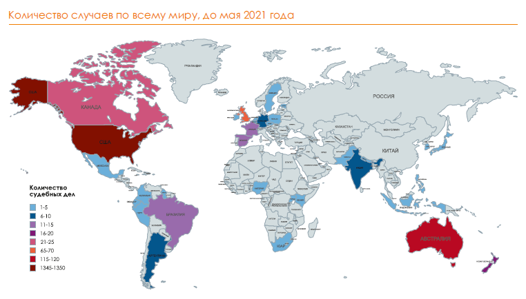 Источник: Setzer J. and Higham С. (2021) Global trends in climate change litigation: 2021 snapshot. London: Grantham Research Institute on Climate Change and the Environment and Centre for Climate Change Economics and Policy, Sabin Center for Climate Change Law
