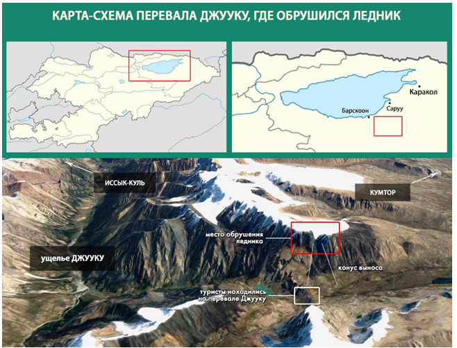 Стихийные бедствия. В горах Иссык-Кульской области на перевале Джууку хребта Терскей Ала-Тоо произошло обрушение ледника. Предполагаемый объем сошедшей ледниковой массы составляет более 2 млн м3 (8 июля).