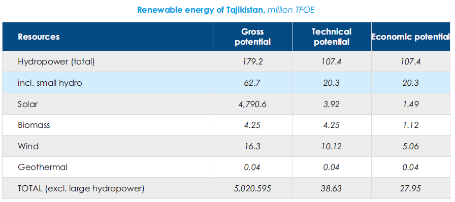 In Tajikistan, the hydropower potential is estimated at 527 billion kWh per year. However, existing capacities allow generating only 18 billion kWh of electricity per year (less than 5% of the potential). At the same time, the share of hydropower in the country's fuel and energy budget is more than 95%. About 300 small HPPs have been built in the country, and another 600 small HPPs can be built.