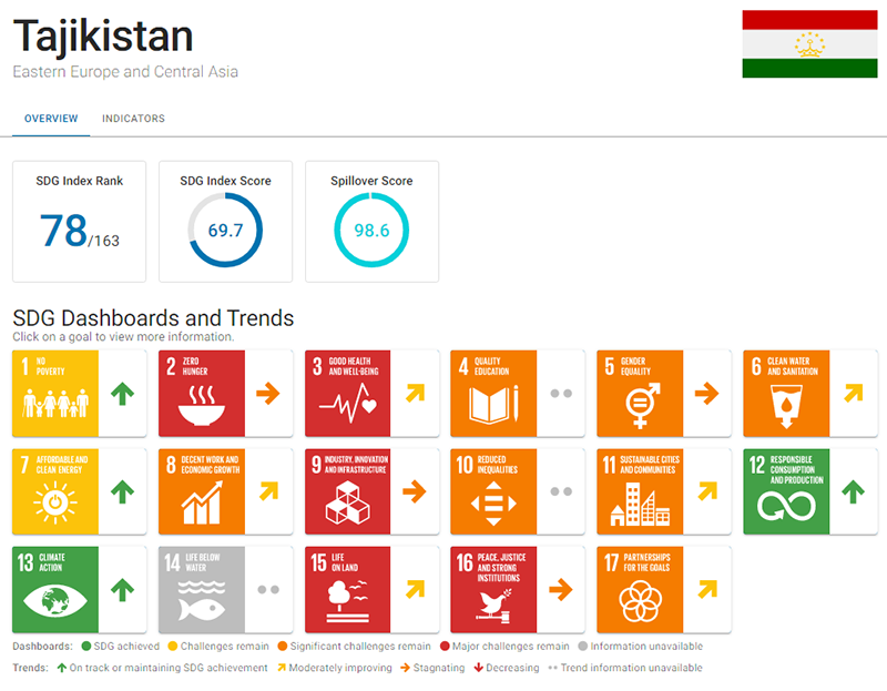 Tajikistan was ranked 78 among 163 countries in the annual sustainable development rating.