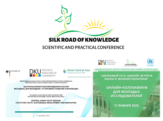 The conference "The Silk Road of Knowledge: Science meets Green Policy" aimed to provide innovative solutions for the five Central Asian economies was organized by the Kazakh-German University (DKU) , with the financial support of the Federal Foreign Office of Germany. The conference was preceded by (1) Central Asian Youth Session "Youth for Youth: Sustainable Development and Innovation" (December 13, online); and (2) Colloquium "Cooperation on Sustainable Development and Climate Change Response in Central Asia and Afghanistan" (January 17, online).