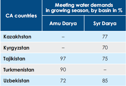 The table below illustrates how water demands were met for the Central Asian states during the growing season.