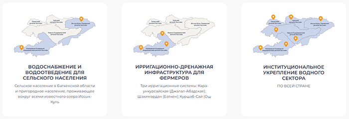 Projects and programs. The Community Development and Investment Agency/KR ARIS is implementing the following projects: (1) Naryn Rural Water Supply and Sanitation Development Program/NRWSSDP (ADB, $32.9 million, 2020-2027); (2) Rural Water Supply and Sanitation Improvement Project for Batkent and Talas Provinces / RWSSIP BT (IsDB, Saudi Fund for Development), which plans: laying the water supply system, construction of a well and rehabilitation of a reservoir (500 m3), establishment of the municipal water operator and training for staff; (3) Sustainable Rural Water Supply and Sanitation Development Project/SRWSSDP (WB, IDA, $26 million 364 thousand+additional financing – $36 million 323.9 thousand, 2017-2025, Chu, Issyk-Kul and Osh provinces); (4) Rural Water Supply and Sanitation Improvement Project (IsDB, $21 million, 2019-2023): the construction of water supply and sanitation systems in 16 villages and 24 schools of Zhalal-Abad province has been completed.