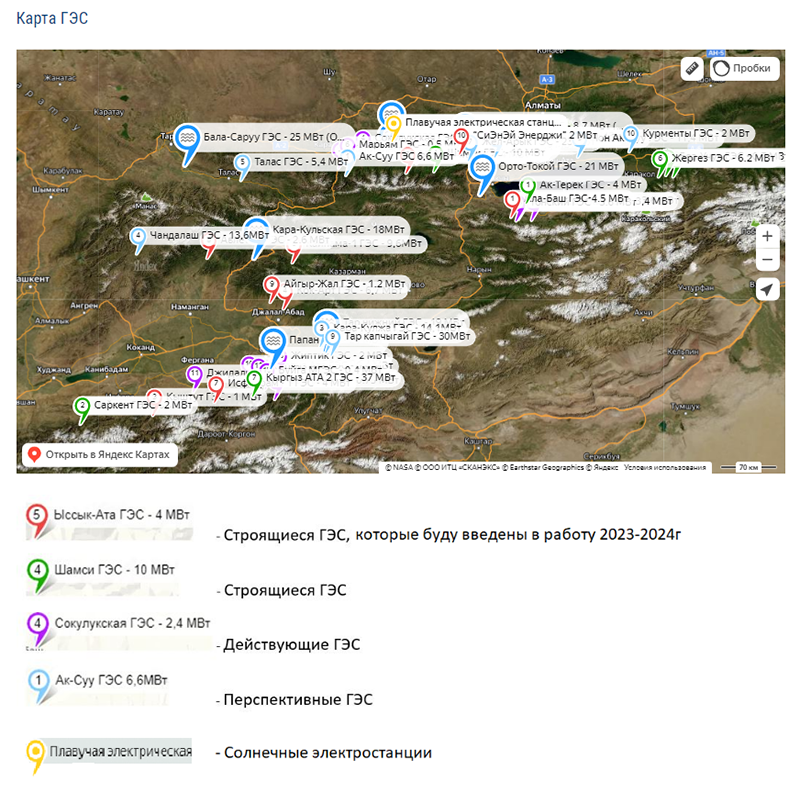 OJSC Chakan HPP, which includes 9 small hydropower plants (1) implements a pilot project (ADB) on the construction of a floating solar power plant at HPP-5 reservoir; (2) signed an agreement with the China National HEAVY Machinery Corporation on the construction of a small HPP at the Orto-Tokoy reservoir of 21 MW (January 13).