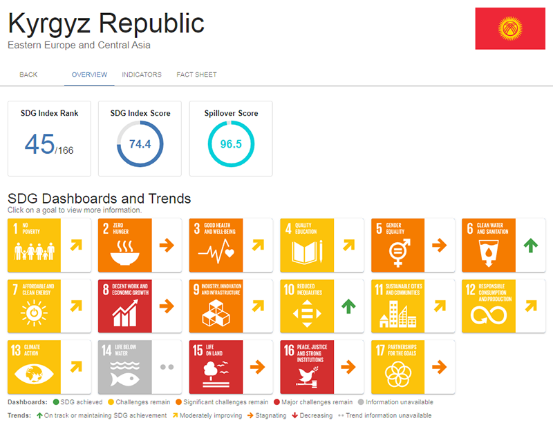 Kyrgyzstan was ranked 45th out of 163 countries in the annual sustainable development rating published by the UN and BertelsmannStiftung.