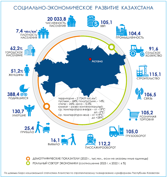 Реализуется национальная программа «Зеленый Казахстан» (2021-2025 гг.), направленная на создание благоприятной среды проживания для населения и улучшение экологической ситуации, в том числе: улучшение качества атмосферного воздуха, эффективное и бережное использование воды, сохранение экосистем озера Балхаш и Северного Аральского моря, эффективное обращение с отходами производства и др. Результаты за 2023 г.